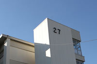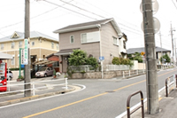 | 香流小学校の交差点を、猪子石荘(市営住宅)の方向へ向います。 | 27号棟の向かい、坂の途中で、左に入る一方通行があります。 | 左折してすぐ右手に、医院があります。 |